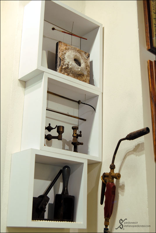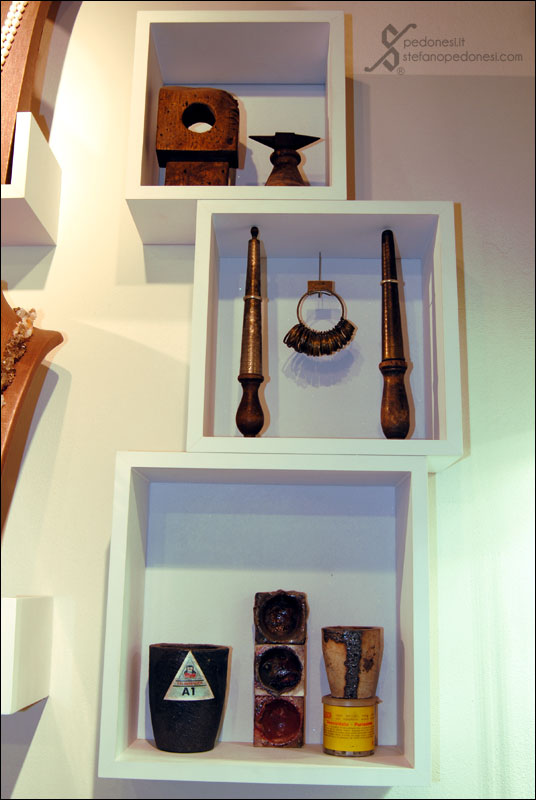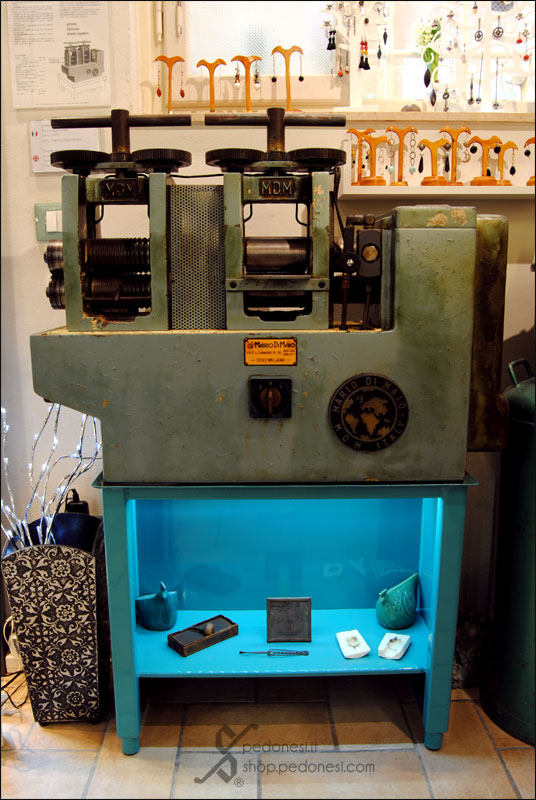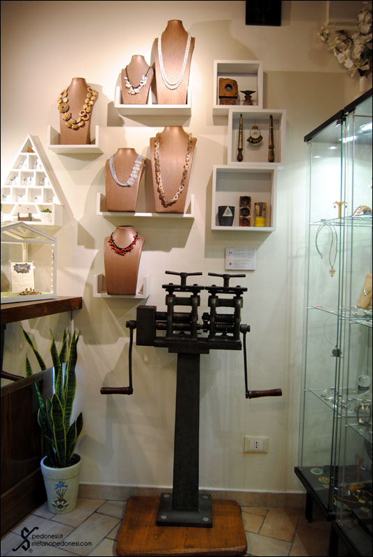 Nello showroom dedicato alla vendita, insieme alle mie creazioni orafe sono visibili vecchi macchinari e attrezzi come a ricreare un piccolo museo.
